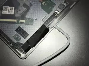 (A1379) С этой моделью нужно быть ещё более осторожным, поскольку места для манёвра меньше. Отогните изоляционную ленту, чтобы увидеть разъём.