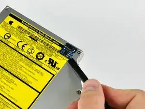 Выкрутите два винта T6 Torx, крепящие гибкий кабель оптического привода к приводу.