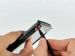 Используйте плоский конец лопатки, чтобы удалить небольшой кусок EMI-пены с нижней стороны оптического привода.