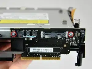 Удалите два винта Phillips, крепящих соединительный блок к оптическому приводу.