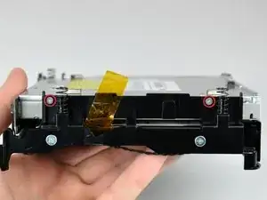 Удалите два винта Phillips, крепящих оптический привод к внутреннему каркасу.