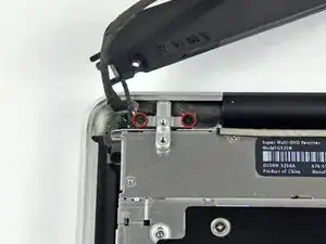 Снимите три крестовых винта 2,5 мм, фиксирующих оптический привод к верхней части корпуса.