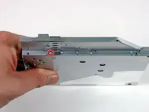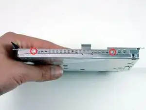 Снимите два серебристых винта Phillips, крепящих монтажную скобу к левой стороне оптического привода.
