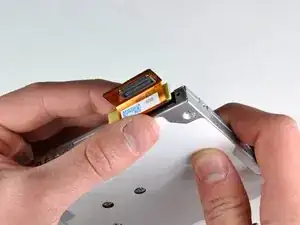 Снимите два винта Phillips, фиксирующих монтажный кронштейн с задней части оптического привода.
