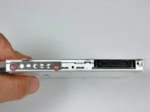 Снимите два серебристых винта Phillips, фиксирующих монтажный кронштейн с левой стороны оптического привода.