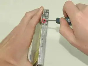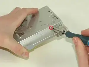Удалите небольшой серебристый винт Phillips, крепящий кронштейн к левой стороне оптического привода.