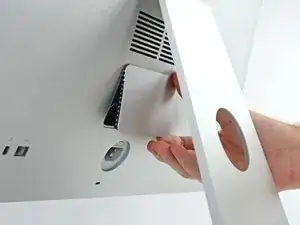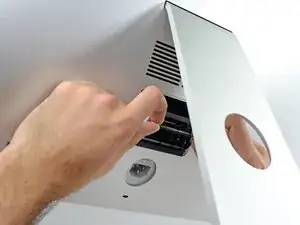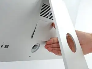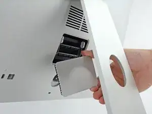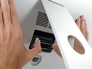 Снимите дверь доступа к ОЗУ с задней части iMac.