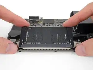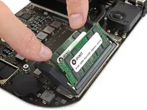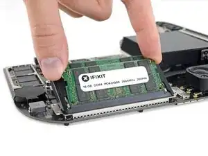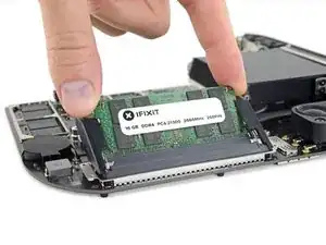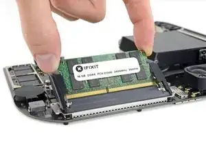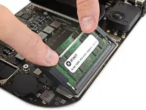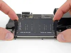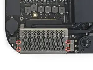 С помощью отвертки T5 Torx выверните четыре винта 2,8 мм, фиксирующие защитную панель памяти (RAM shield).