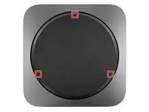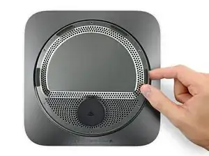 Используйте приспособление для вскрытия корпуса, чтобы поддеть и приподнять нижнюю крышку Mac mini.