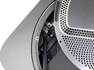 При ориентации Mac mini портами к вам аккуратно приподнимите антенную пластину и сдвиньте её примерно на дюйм вправо.