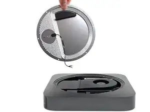 Не снимайте антенную пластину полностью; она всё ещё соединена с Mac mini антенным кабелем.