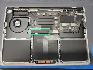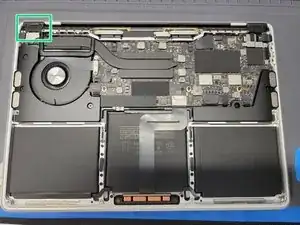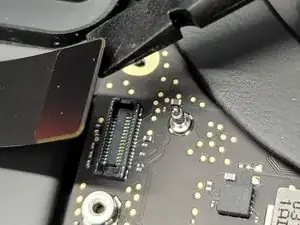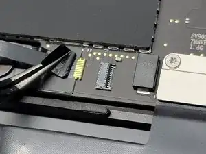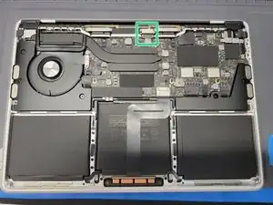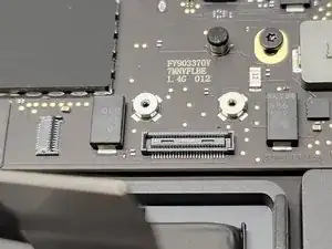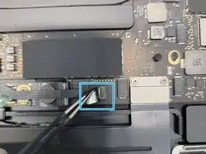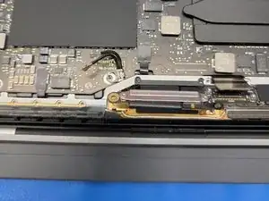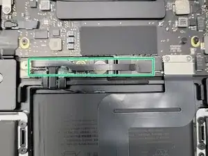 Найдите скопление гибких кабелей Touch Bar в верхней правой части Macbook