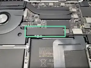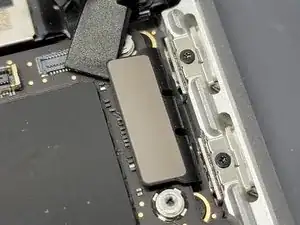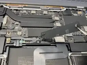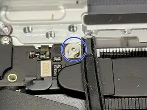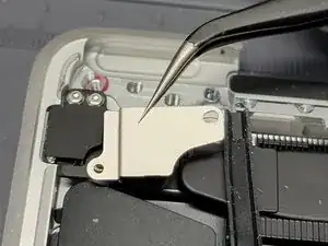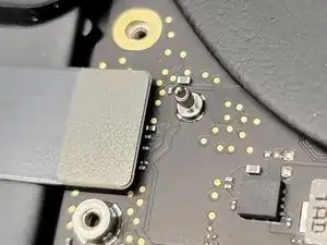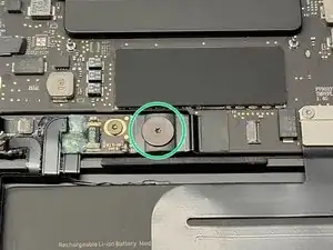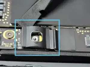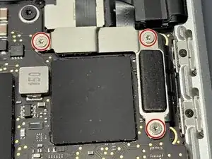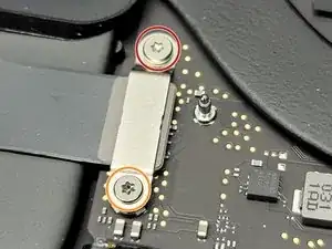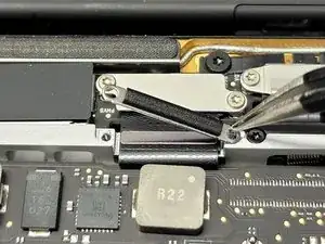 Удалите 2× 4.1 мм винта Torx T3, крепящих пружину к MacBook