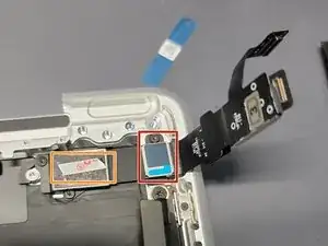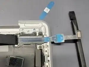 Снимите синюю защитную плёнку с клейкой части кабеля дигитайзера сенсорной панели.