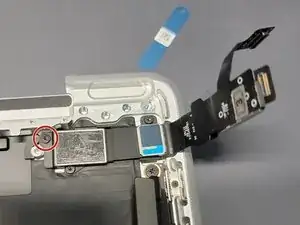 При сборке: Может быть трудно ввернуть верхний левый стойковой винт платы логики. Если вам сложно это сделать, возьмите 1.4mm винт, который мы сняли при демонтаже крепления кнопки питания, и вверните его в верхний левый стойковой винт платы логики. После этого вверните теперь уже «киборг» винт обратно в плату логики.
