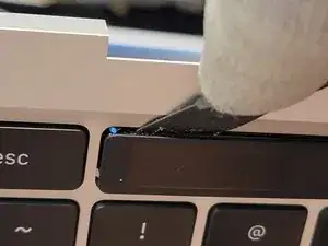 Этот метод защищает рамку под Touch Bar от царапин, устраняет риск «расплавления» клавиш от растворителя клея и может позволить повторно использовать Touch Bar.