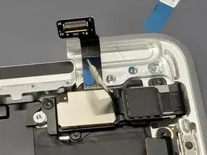 Пинцетом потяните пластиковую крышку от ZIF‑разъёма, чтобы вынуть шлейф из разъёма