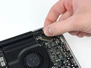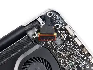 Убедитесь, что замок кабеля данных дисплея повернут в сторону платы DC-In перед продолжением.