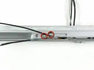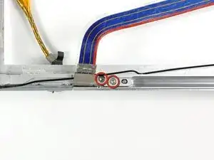 Снимите последнюю пару винтов Torx T8 длиной 10,3 мм, крепящих петли сцепления к передней рамке дисплея.