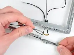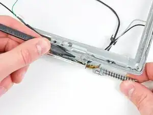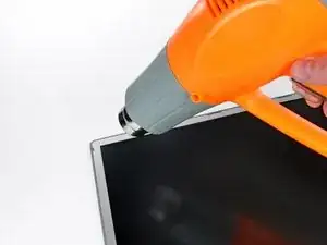 В следующих шагах вы будете использовать тепловую пушку, чтобы размягчить клей, удерживающий металлическую рамку ЖК-экрана на передней рамке дисплея. Тепловые пушки способны создавать чрезвычайно горячую струю воздуха, поэтому следите, чтобы не перегреть ЖК-панель.