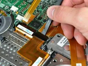 Оттяните кабель передачи данных дисплея от его разъёма, чтобы отключить его от логической платы.