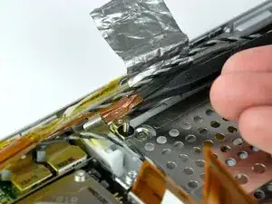 При необходимости удалите кусок ленты и вспененный экранный материал, закрывающие антенны AirPort/Bluetooth.