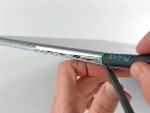 Вставьте плоский конец лопатки между передней рамкой дисплея и пластиковой кромкой, прикреплённой к задней рамке, рядом с нижним правым углом дисплея.
