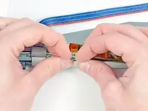 Используйте ногти, чтобы отвести защёлку ZIF-кабеля от его разъёма. (Сдвиньте две коричневые части вниз на 1 мм)