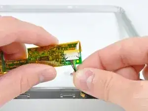 Отключите кабель от материнской платы и извлеките левый датчик окружающего освещения из компьютера.