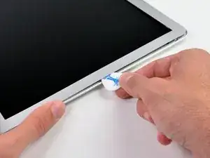 Не подденьте вблизи камеры iSight — вокруг неё нет клея, и вы можете повредить камеру медиатором.