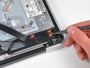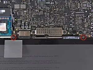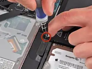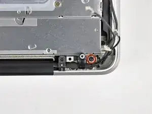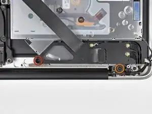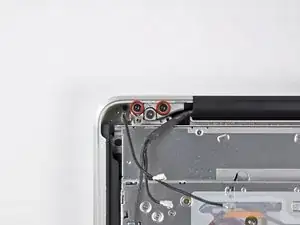 Снимите два из трёх винтов Torx T6 6 мм, фиксирующих левую сторону дисплея к верхней части корпуса.