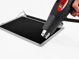 При использовании тепловой пушки цель — размягчить слой клея, удерживающий окантовку на сборке дисплея. Будьте очень осторожны, чтобы не перегреть ЖК-экран — это может вызвать необратимые повреждения.