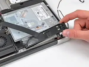 Снимите держатель кабеля данных дисплея с верхней части корпуса.