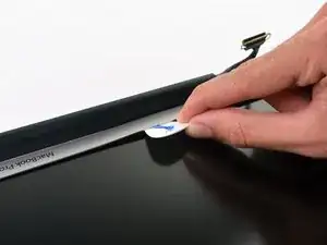 Возьмитесь за пластиковую петлю, закреплённую на защёлке кабеля данных дисплея, и поверните её в сторону разъёма питания (DC-In) компьютера.