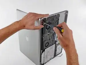 Удалите последний оставшийся винт T6 Torx, крепящий дисплей к верхней части корпуса.