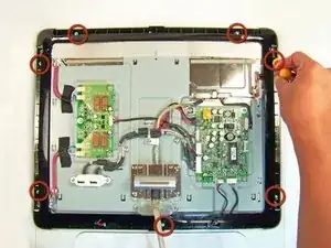 Отверните винты с головкой шестигранник размером 2.5 в каждом углу, которые крепят панели к дисплею, и снимите панели.