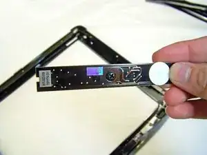 С помощью лопатки снимите четыре чёрных накладки панелей по краям дисплея.