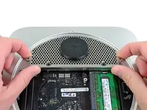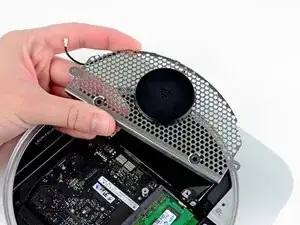 Поверните кожух в сторону от внешнего корпуса и снимите его с мини-компьютера.