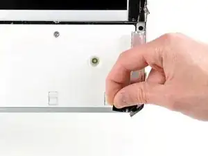 Отогните кусок электромагнитной/экранирующей ленты, соединяющей нижний край правого динамика с металлической рамой iMac.