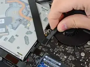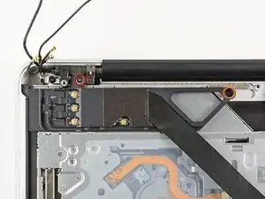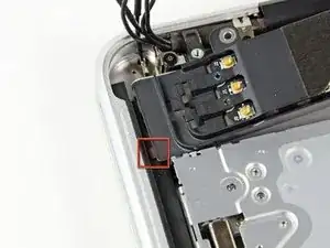 Отклейте и снимите кусок экранирующей ленты, обёрнутой вокруг узла AirPort/Bluetooth.