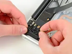 Снимите кабель AirPort/Bluetooth с узла AirPort/Bluetooth.