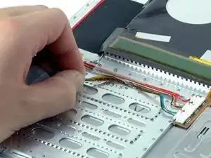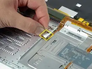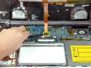 Отключите шлейф тачпада и клавиатуры от платы логики, удаляя клейкую ленту по мере необходимости.