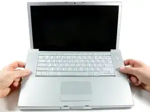 Поверните компьютер на 90 градусов и выкрутите два шурупа Phillips длиной 3,2 мм с задней стороны компьютера.