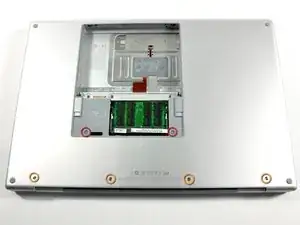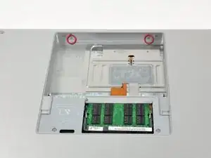 Два шурупа Torx T6 длиной 10 мм по бокам от слота ОЗУ.