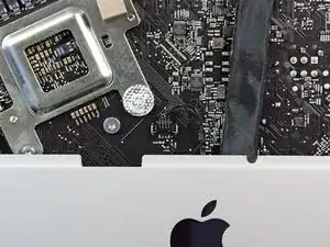 Потяните разъём ИК‑платы к верхней части iMac, чтобы отсоединить его от логической платы.