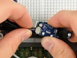 Удалите единственный винт Torx T6, который фиксирует кронштейн платы ИК-приёмника на плате логики.