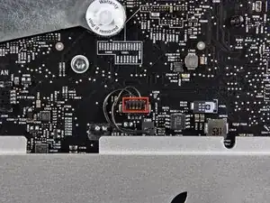 Потяните разъём ИК-платы к верхней части iMac, чтобы отключить его от материнской платы.