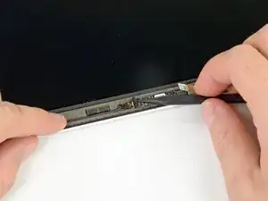 Продолжайте работать вдоль левого края переднего стекла дисплея, пока оно полностью не отделится от дисплея.