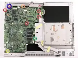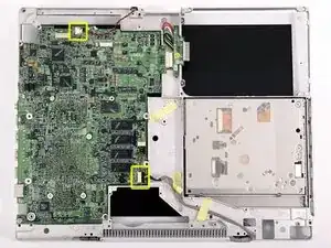 Удалите один винт Phillips, закрепляющий логическую плату в металлической раме.