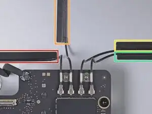 Отключите кабель левого динамика, потянув его прямо вверх из гнезда на плате логики.